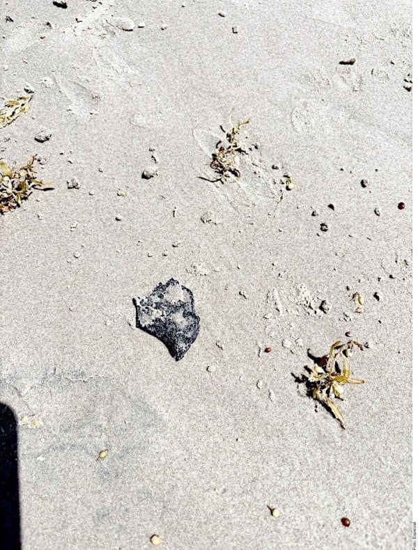 En Playa Bagdad, Matamoros, también abarrotada de vacacionistas por la Semana Santa, paseantes se toparon con chapopote.