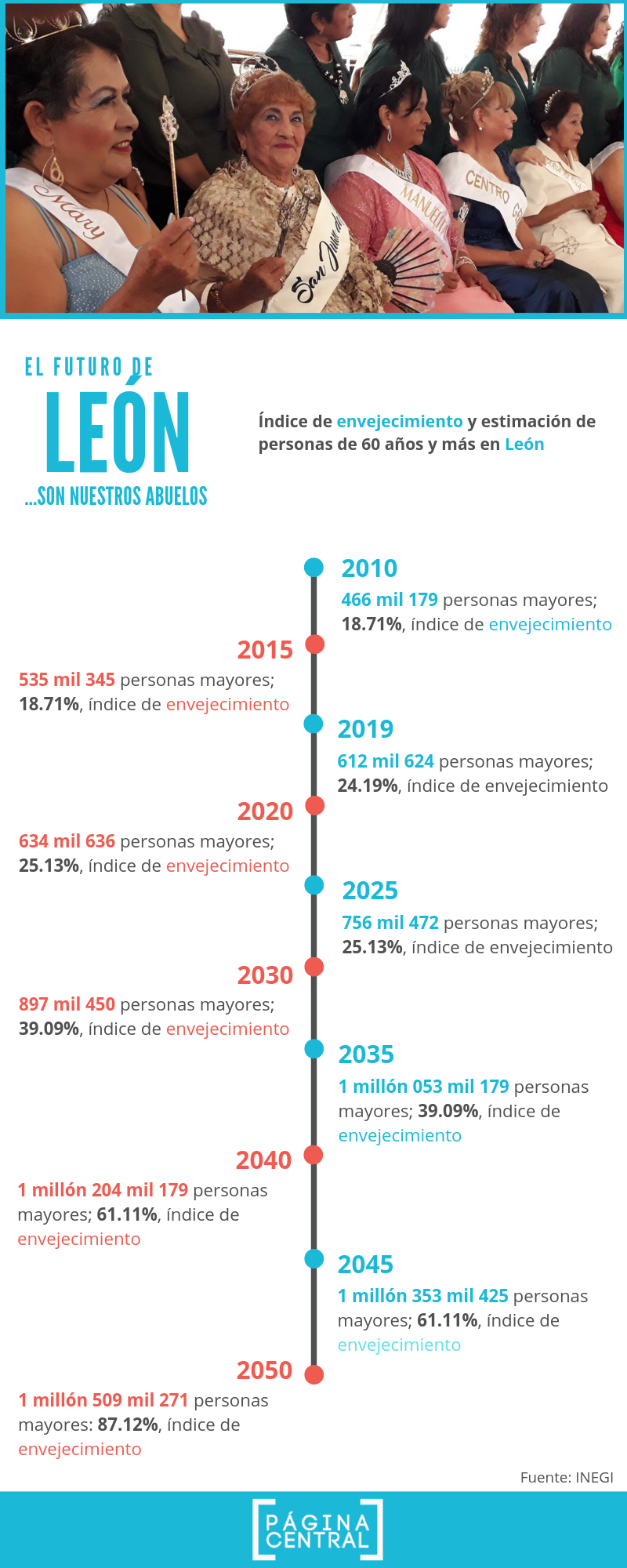 De acuerdo a las estimaciones del INEGI, en los próximo 31 años el índice de envejecimiento para Guanajuato sería del 62.93