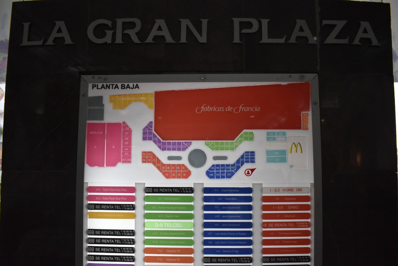 Caminar por los pasillos de La Gran Plaza es leer los frecuentes anuncios de “Renta”, locales vacíos con algún tipo de inmobiliario olvidado a propósito y vendedores que soportan el paso del tiempo y se distraen con sus teléfonos celulares o buscan entre el piso un poco de paciencia.