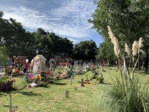Rehiletes, osos de peluche, juguetes y demás artículos adornaron las tumbas de los “angelitos”, es decir de los menores que perdieron la vida.