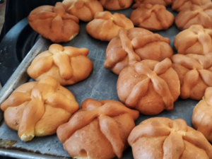 La gran diferencia entre el Pan de Muerto y otro tipo de pan son los “huesitos” o “canillas” que lleva a los costados, también la parte de encima que es una bolita de masa; esto representa al “difunto” y si no tiene estas características pierde su encanto.