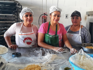 Lulú, Jennifer y María Reyna trabajan en la panadería Yisus Pan.[/caption]