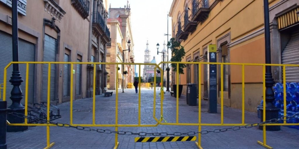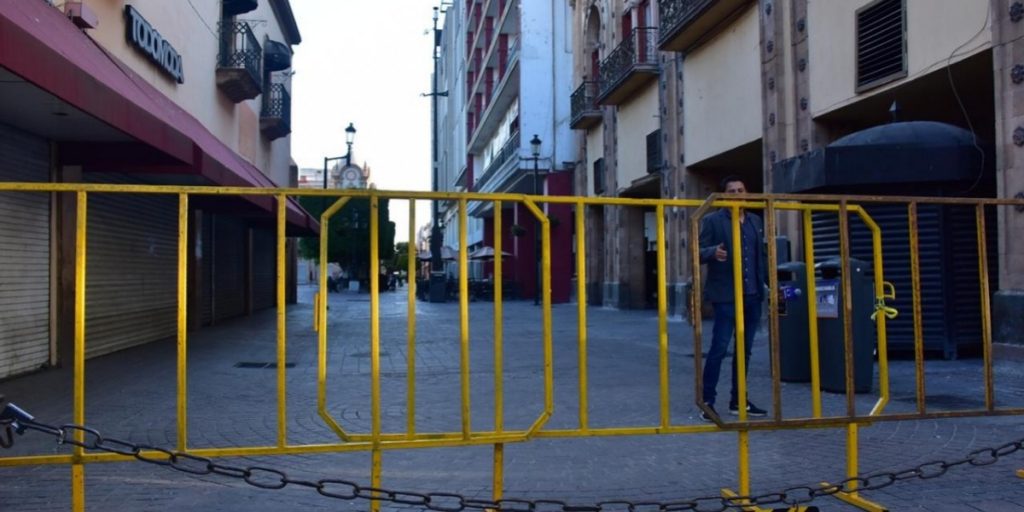 Por las medidas preventivas implementadas para mitigar los daños por la pandemia del coronavirus covid-19, la Zona Peatonal del Centro Histórico de León fue cercada con vallas que impiden el paso a cualquier ciudadano.