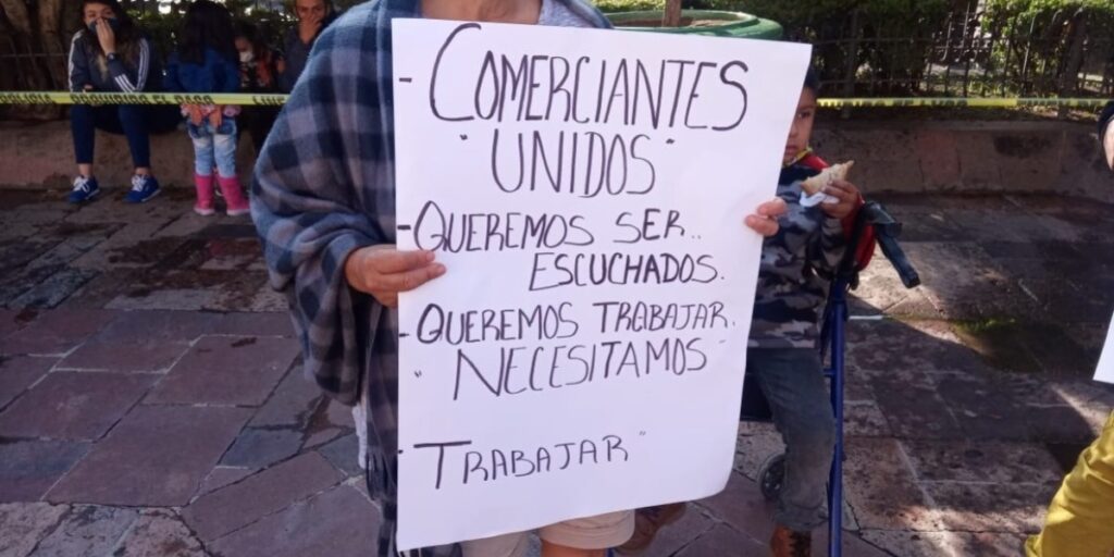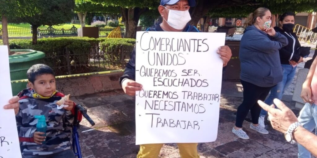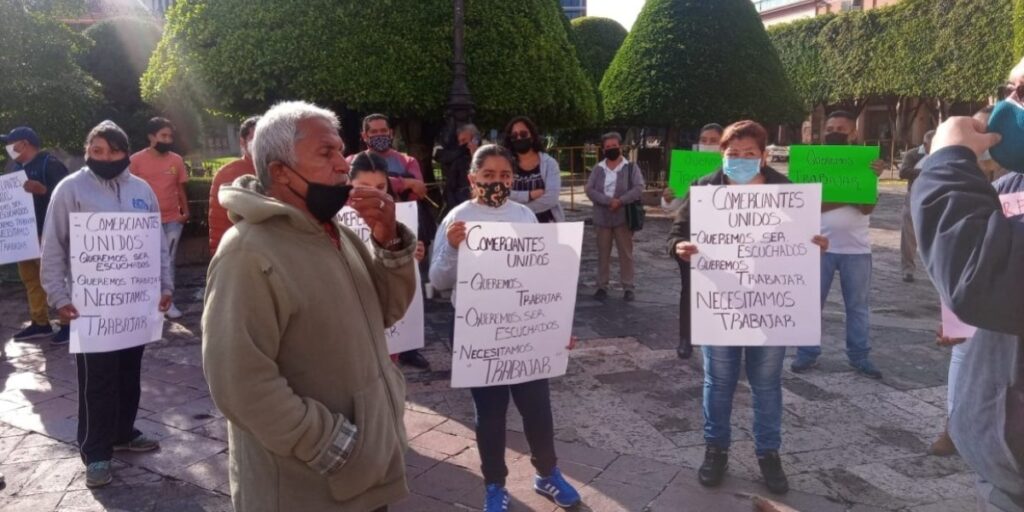 Un grupo de 50 comerciantes de León se manifestaron afuera de la Presidencia Municipal para exigir que el gobierno municipal les permita trabajar con las medidas sanitarias correspondientes.