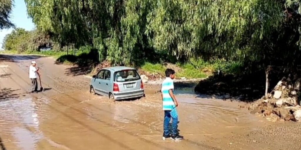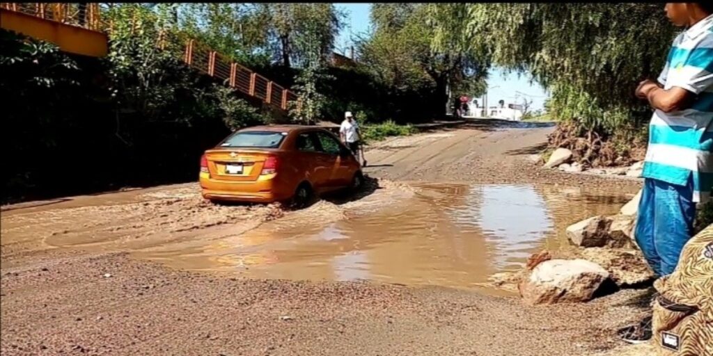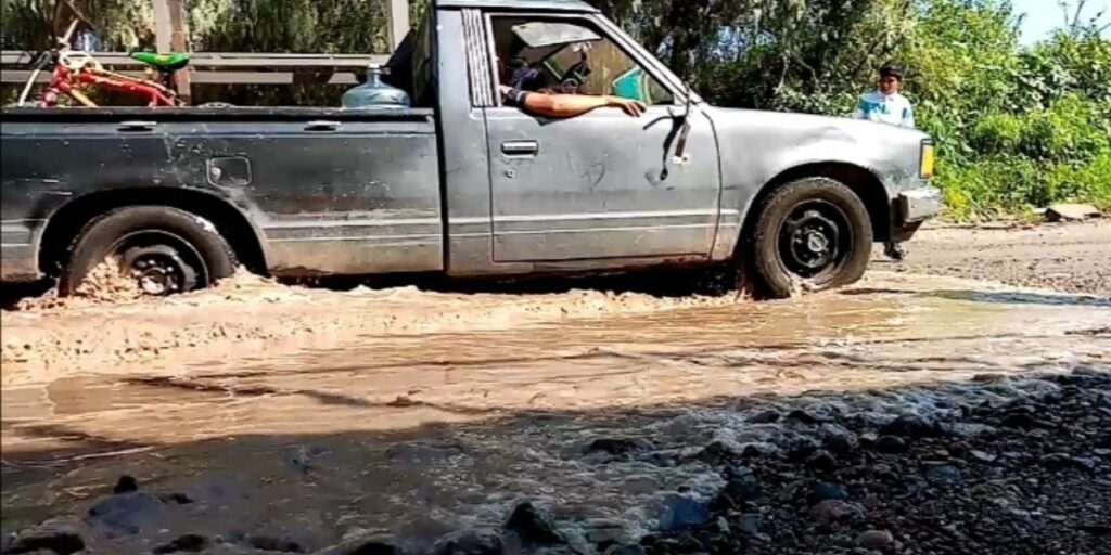 La situación es aprovechada por algunas personas para guiar a los vehículos por el punto menos profundo, con la intención de obtener algunos pesos a cambio.