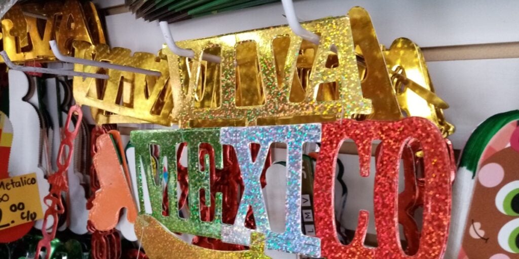 Entre los productos que se ofertan en estos establecimientos están los letreros, listones, banderas, letreros con memes en cartón, colguijes e imágenes de los héroes patrios.