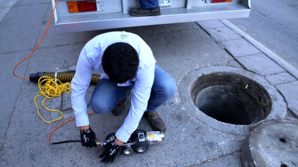 Las cámaras robotizadas son introducidas a la red de drenaje y personal de SAPAL guía sus movimientos de manera remota.