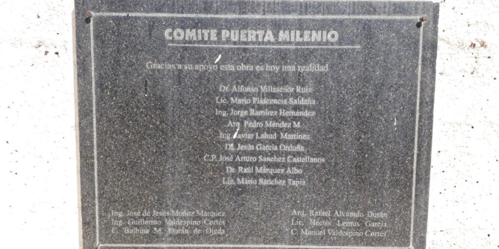 En una de ellas se agradece al comité de la Puerta Milenio, entre ellos a: Alfonso Villaseñor, Mario Plascencia Saldaña, Jorge Ramírez Hernández, Pedro Méndez, Javier Lahud Martínez, Jesús García Orduña, Jorge Arturo Sánchez Castellanos, Raúl Márquez Albo y Mario Sánchez Tapia.
