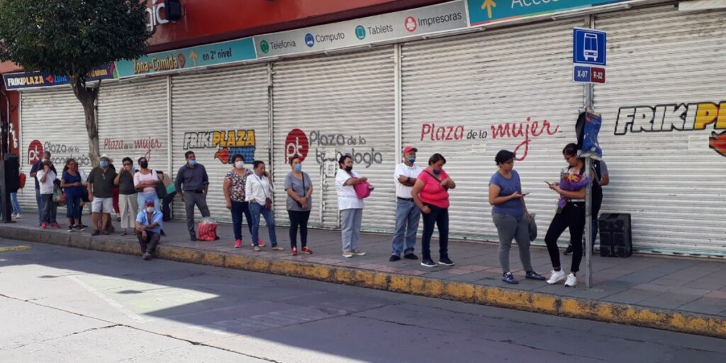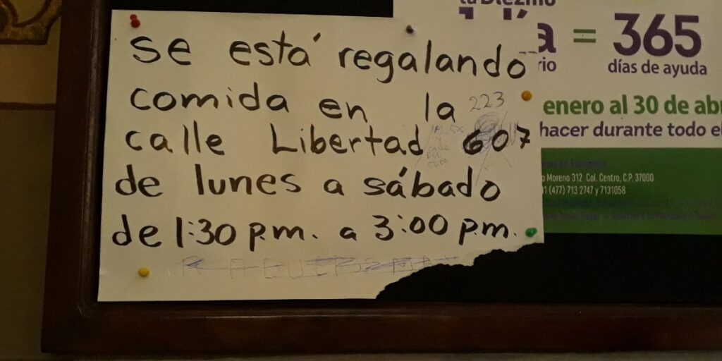 Pero la mayoría de las personas no usan cubrebocas y aunque en los avisos parroquiales señalan que se regala comida no hay ninguna hoja o cartel que invite al uso de las medidas de higiene para combatir el virus.