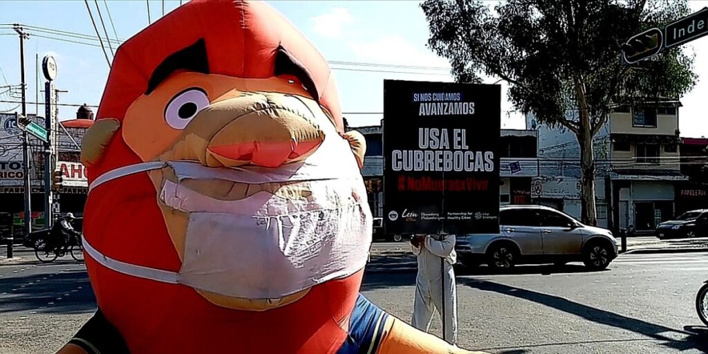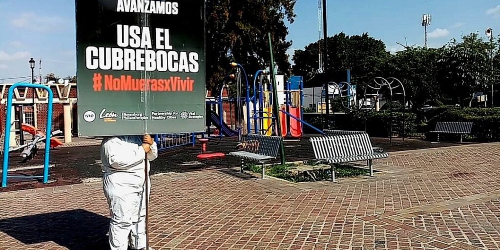 ‘¡ATENCIÓN! Está usted entrando a una zona de alto riesgo por COVID-19’, el mensaje es contundente.