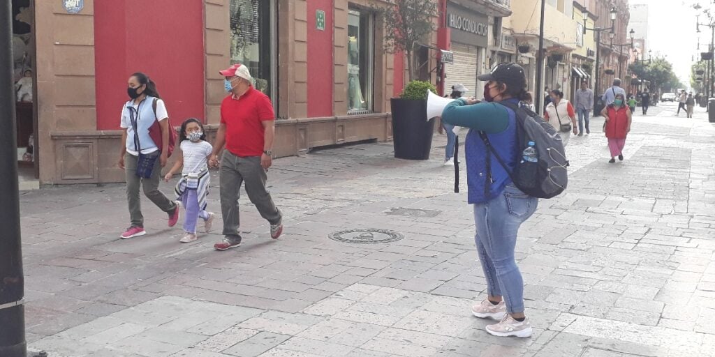 El altoparlante del personal de la Jurisdicción Sanitaria VII transmitía un mensaje que resultó alarmante para visitantes al primer cuadro de la ciudad: “en este momento la zona centro es una zona de alto riesgo ya que tiene el mayor número de casos por COVID-19”.