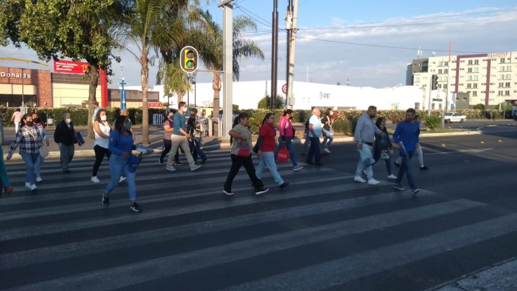 Alrededor de las 7:30 a.m. comenzó a verse concentración de personas alrededor de la Zona Industrial de León, yendo rumbo a su trabajo, algunos con cubrebocas y otros sin acatar los protocolos establecidos en la Jornada de Sana Distancia.