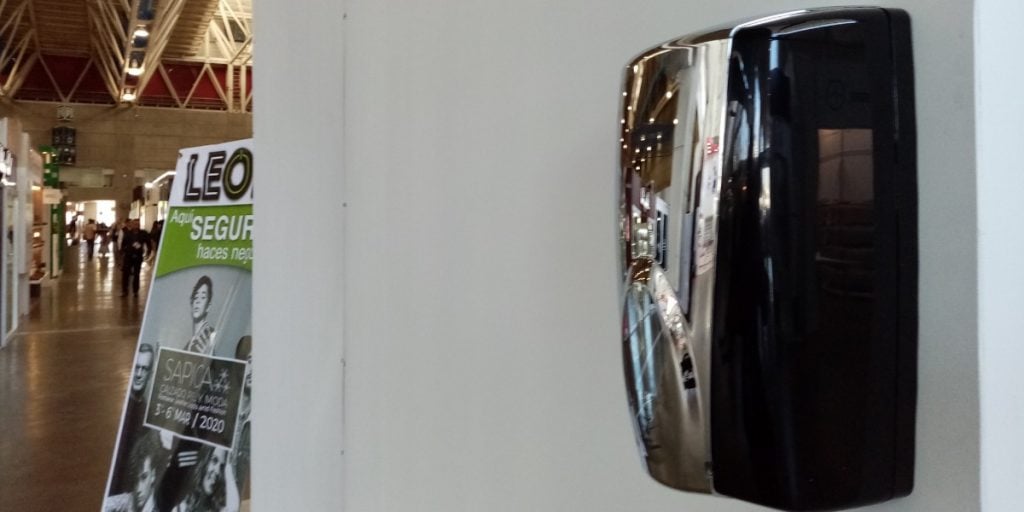 Los expositores de Sapica toman precauciones antes los primeros casos importados de Covid 19 en nuestro país, los participantes en la Feria de la Piel y el Calzado saben de la cantidad de personas que visitan las salas de Poliforum y en algunos stands es común ver dispensadores de gel antibacterial.