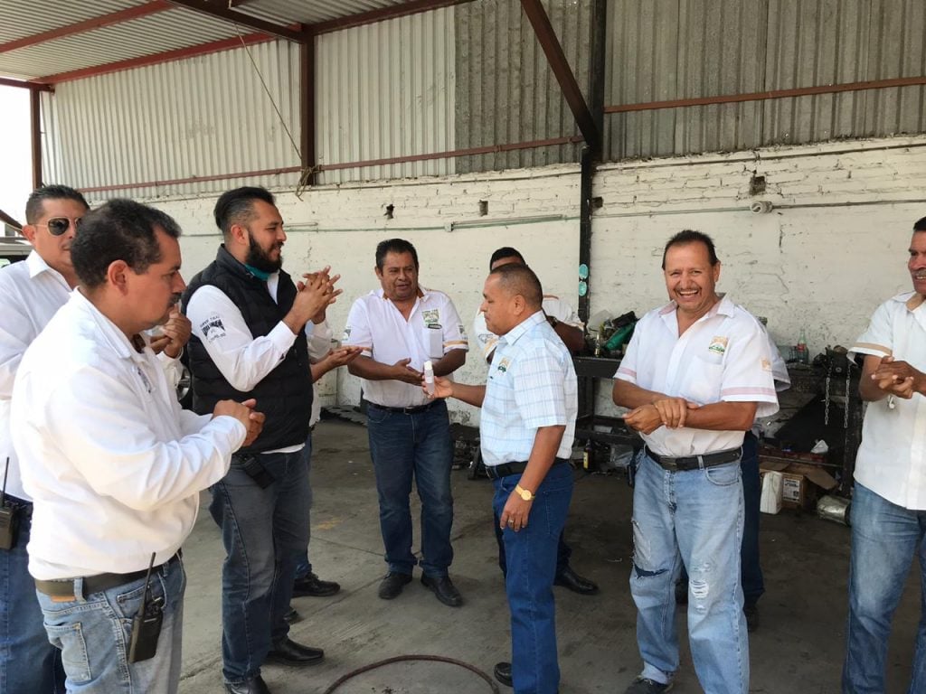 A la plática de orientación asistieron trabajadores de la organización Super Taxi Linea Dorada, quienes recibieron el alcohol en gel y la plática orientadora de medidas preventivas de sanidad.