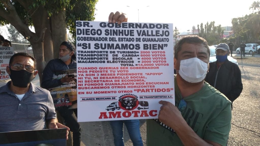 Irma Serrano Macías, delegada en Guanajuato de la AMOTAC, informó que planeaban establecer casas de campaña y no retirar la protesta hasta ser recibidos por personal de gobierno, respecto a apoyos suficientes para el sector transporte de turismo.