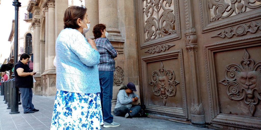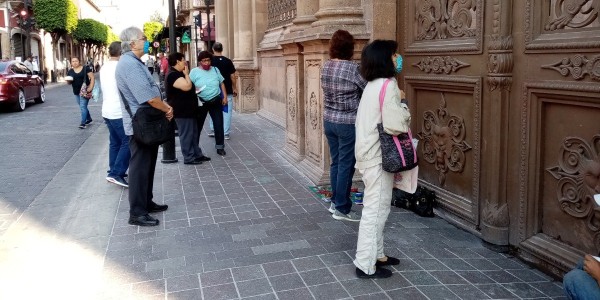 Pese a las restricciones por el Covid-19, la feligresía de la ciudad de León se dio cita a la Catedral para orar desde el exterior, por momentos el ‘cúmulo’ de devotos era superior a las 30 personas.