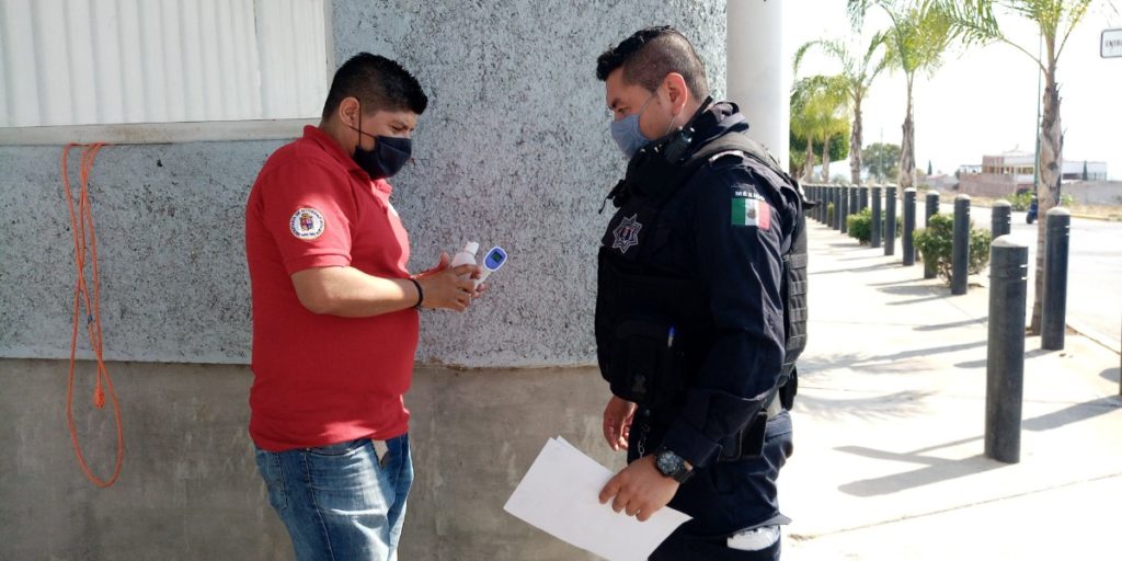 A partir del miércoles 27 de mayo, la Secretaría de Seguridad Pública de León reforzó medidas que se implementan desde el acceso del personal, con un filtro en donde se toma la temperatura de cada persona que ingresa, además de que se les dota de gel alcohol y se les pide descender del vehículo para sanitizar el interior del automóvil.