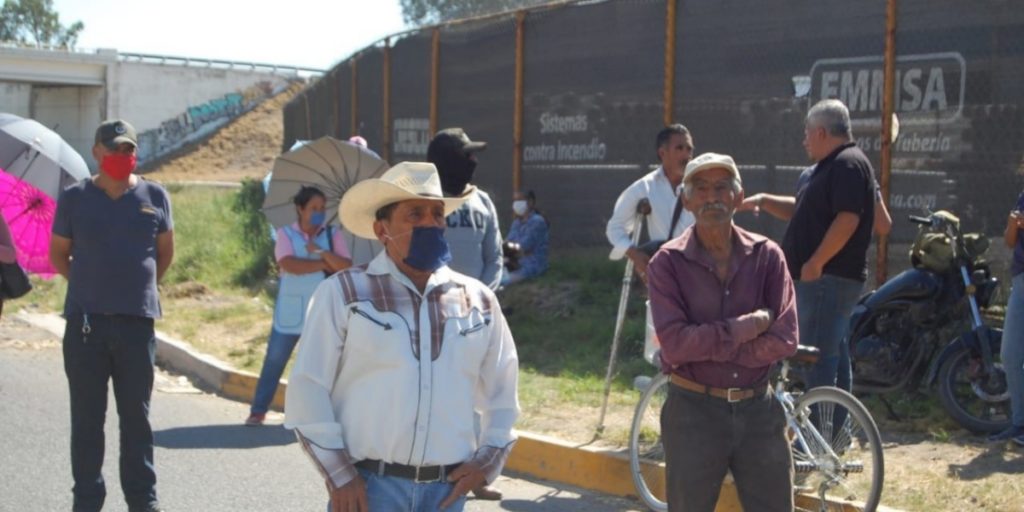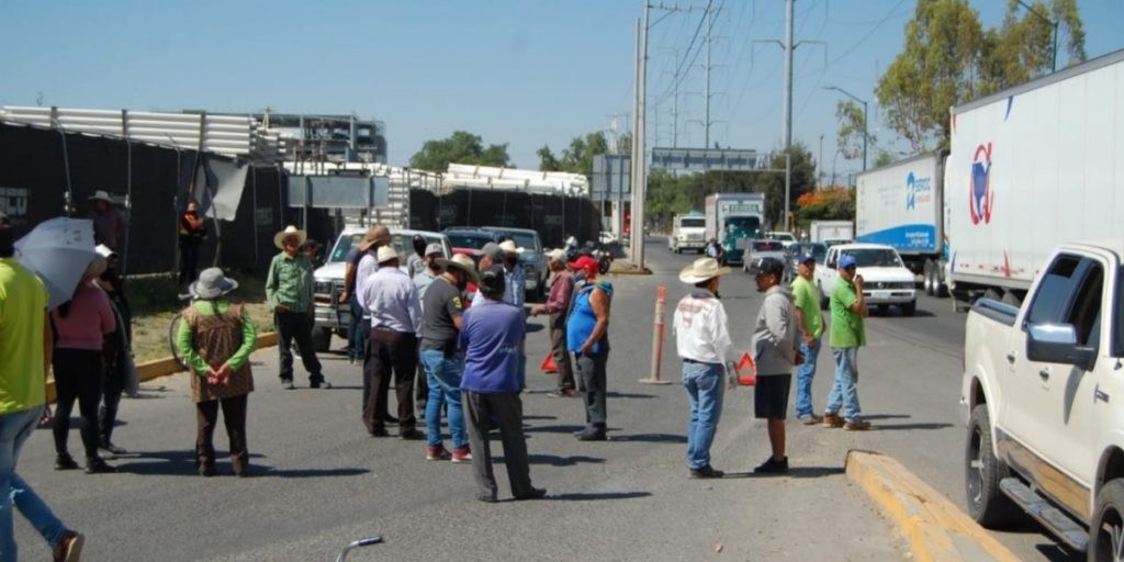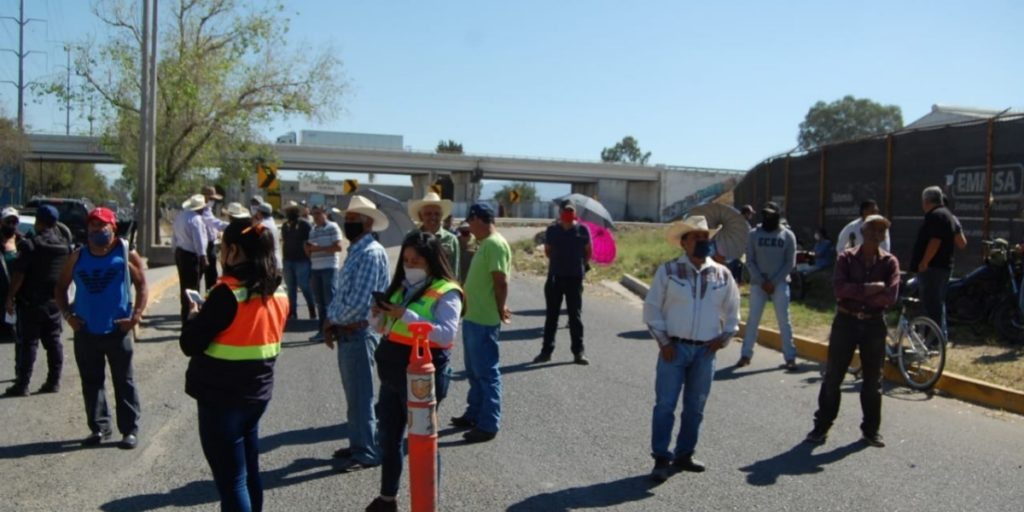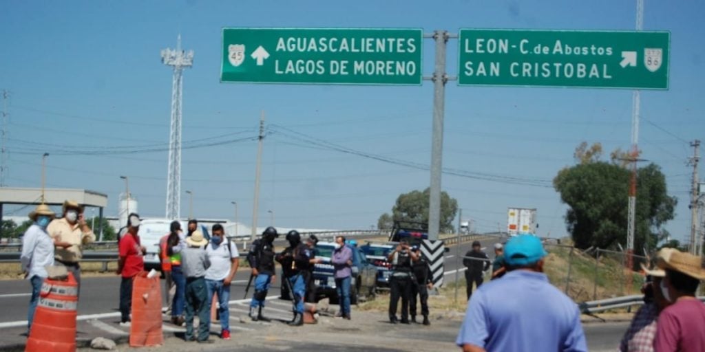 Ejidatarios de la comunidad de Los Arcos se manifestaron en la entrada de la Maxipista León-Aguascalientes para exigir el pago de afectaciones por unos terrenos que aseguraron hace más de 20 años no les paga el Municipio.