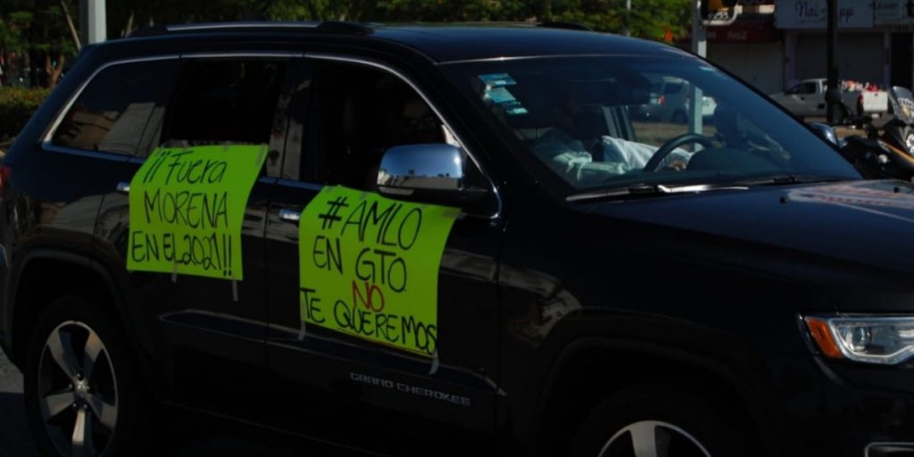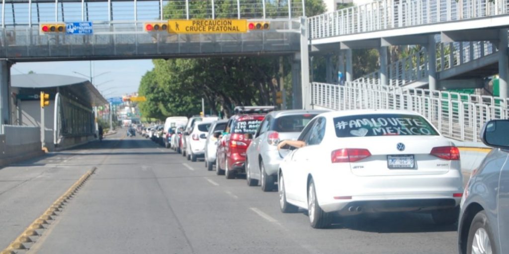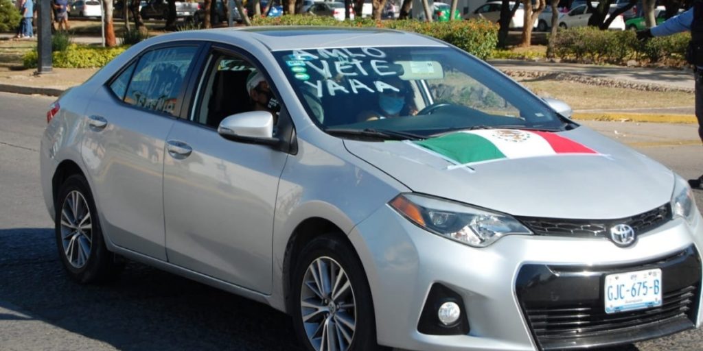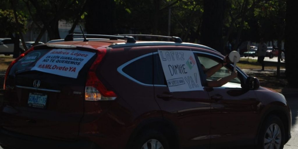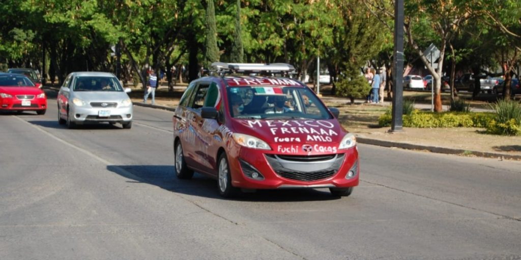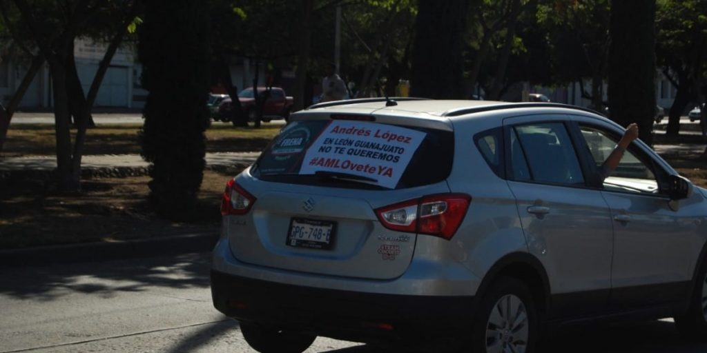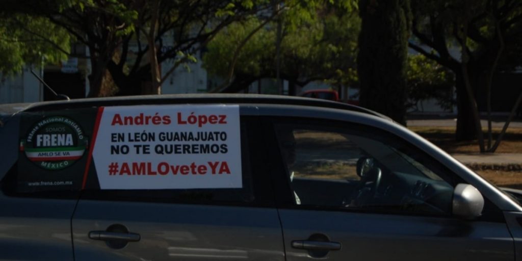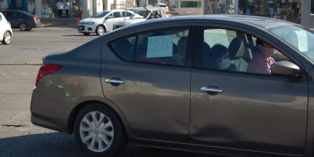 Al llegar al bulevar López Mateos se podían observar pancartas en los vehículos que decían "Fuera AMLO", "No se ha terminado la corrupción".
