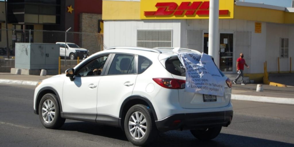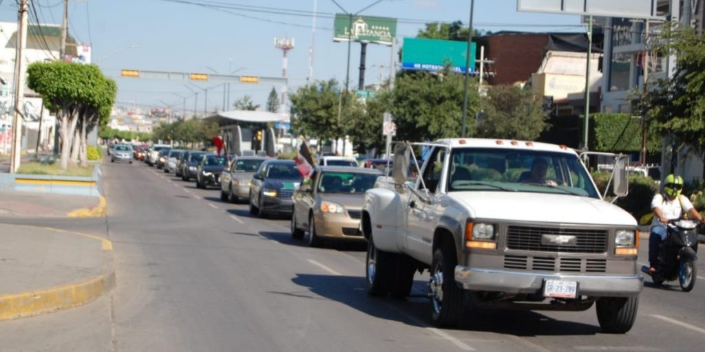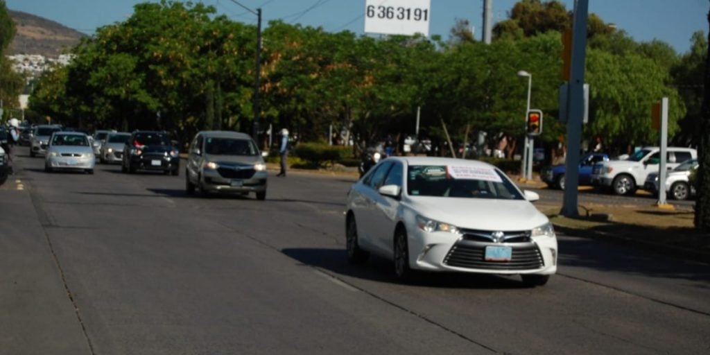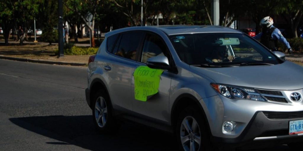 Minutos antes de las 9:30 de la mañana, un contingente de coches se enfiló para protestar, salieron desde el estacionamiento del centro comercial Plaza Mayor.