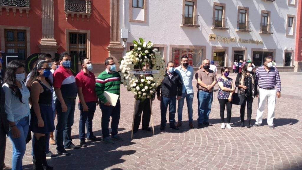 Durante la manifestación se pudieron observar una corona de rosas blanca con la leyenda ‘Ya basta’, así como pancartas en donde exigían justicia en algunas se pidan leer ‘Alto a los homicidios’, ‘No más muertos’, entre otras.
