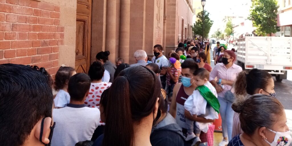 En el templo de El Inmaculado Corazón de Jesús los fieles católicos hicieron filas de más de una hora para entrar 10 minutos al lugar ubicado en la calle 20 de Enero y Álvaro Obregón de la zona centro de León.