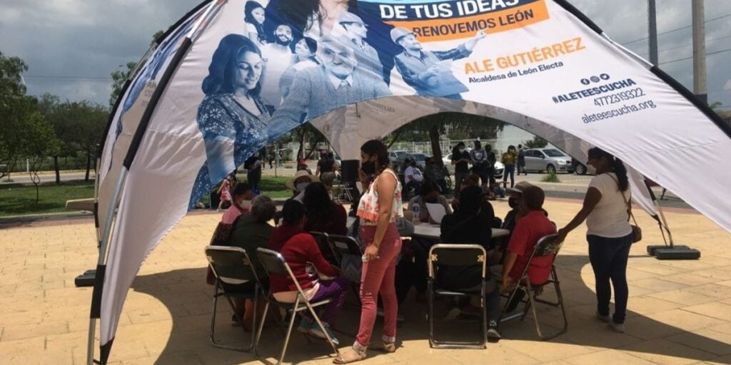 Bajo los rayos del sol, decenas de leoneses de la colonia Libertad y localidades aledañas, acudieron a sumar sus propuestas en el Kiosco Móvil que es parte de la iniciativa ciudadana de la próxima alcaldesa de León, Alejandra Gutiérrez Campos.