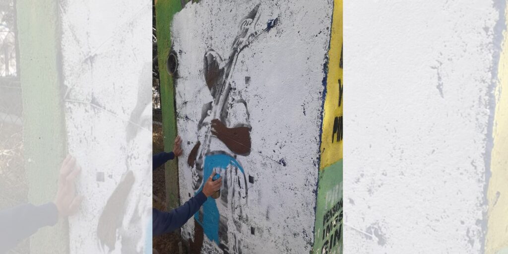 “Si el muro está muy madreado como este, sí hay que darle un ‘pasón’ leve. Desde cuando le traía ganas a este, desde hace como 3 meses. Vi que la barda estaba abandonada y pensé que había que darle buena vida … me gusta mucho intervenir esos espacios porque están como olvidados, y llega uno y les da otro tipo de vista y eso está muy padre”.