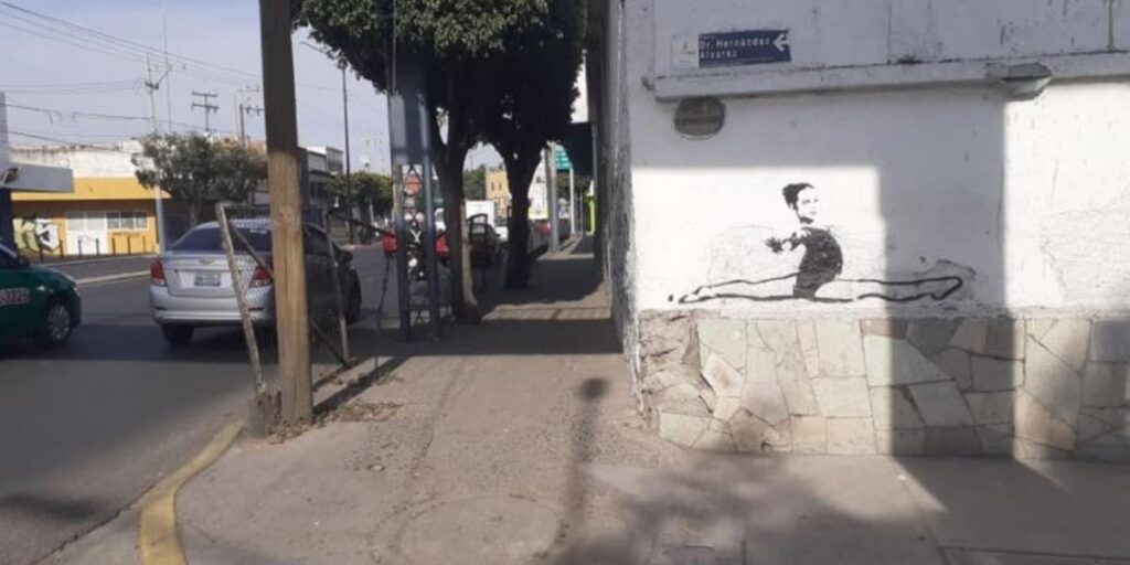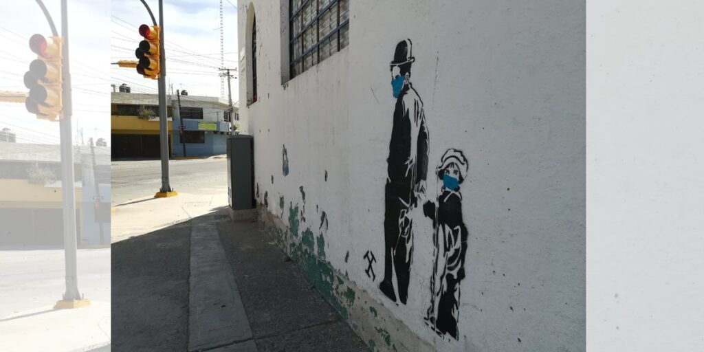 La barda en donde decidió plasmar una de sus piezas más recientes se encuentra frente al cuerpo oriente del Parque Hidalgo, en una colonia en donde las construcciones son viejas y las propiedades en abandono proliferan: El Barrio Arriba. La gente pasa y lo observa mientras termina de preparar el espacio.