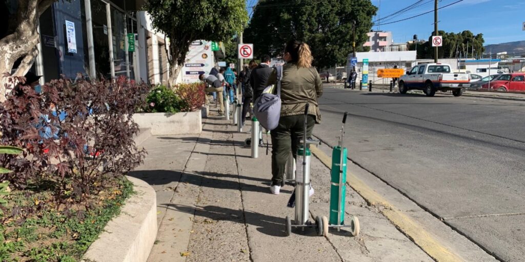 Los ciudadanos relataron que hay personas que lucraron con la necesidad de la gente y venden tanques de oxígeno en hasta 28 mil pesos, posteriormente el peregrinar comienza al momento de tener que recargarlos, pues algunos les dura entre 3 y 6 horas.