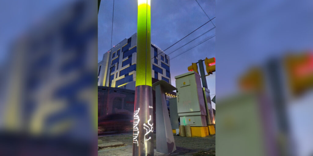 Fue en julio del 2020 cuando arrancó la prueba piloto del biorreactor Green Light, colocado en el cruce de los bulevares Francisco Villa y Adolfo López Mateos, con la intención de capturar los contaminantes del aire y convertirlos en biomasa que puede servir de biofertilizante.
