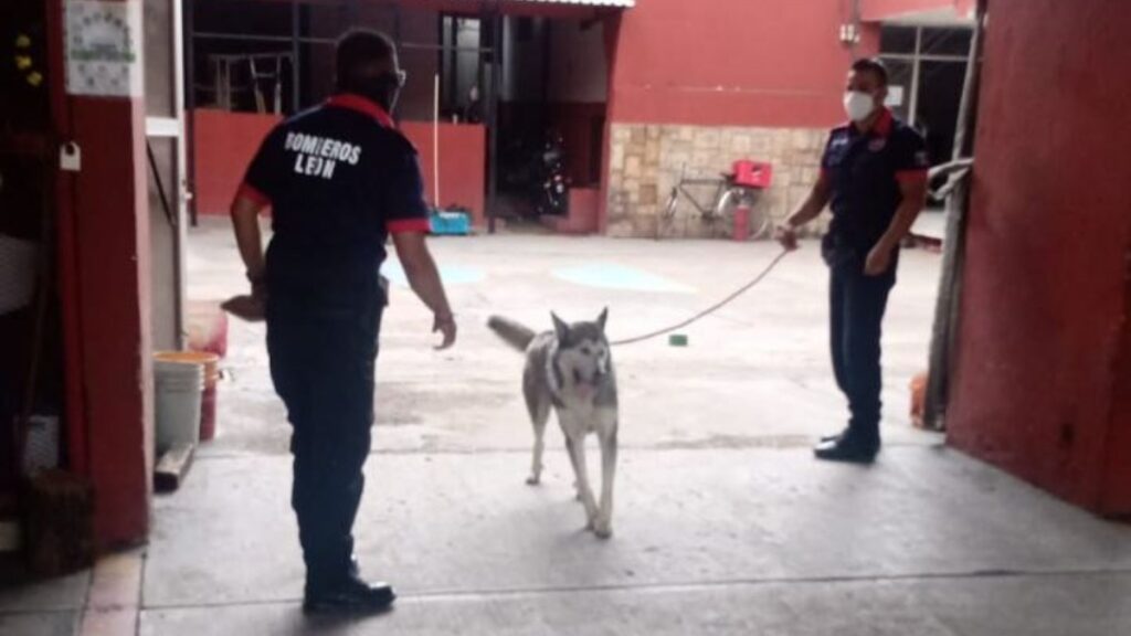 De momento el perro fue resguardado en la estación Central de Bomberos y fue revisado por un veterinario, donde fue alimentado por el personal.