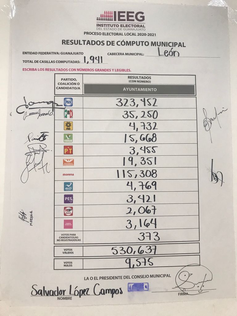 Antes de las 3 de la tarde de este jueves, fue entregada la constancia de mayoría a los integrantes del Ayuntamiento de León 2021-2024, que será encabezado por Ale Gutiérrez, la primera alcaldesa del PAN en la ciudad.