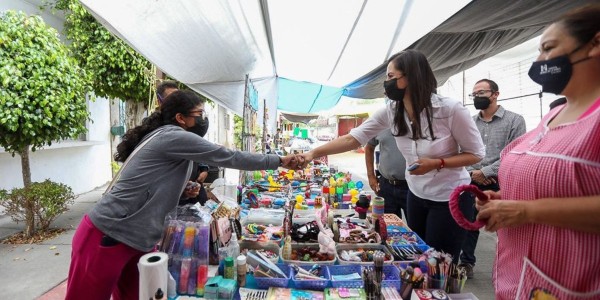 Luego de resultar vencedora en la pasada contienda electoral del seis de junio, Alejandra Gutiérrez Campos, visitó a tianguistas de la colonia León II para conocer sus necesidades.