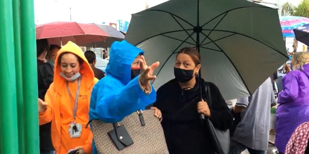 Sin embargo, la fuerte lluvia registrada alrededor de las 16:00 horas generó un conflicto en el proceso de vacunación por el encharcamiento generado en la zona de vacunación, siendo el único espacio con sillas y techado.