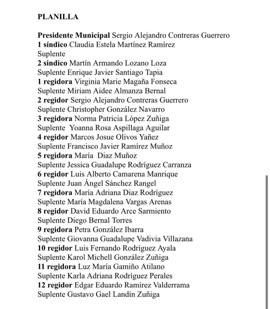 Contreras Guerrero destacó que en su planilla incluyó perfiles juveniles y de experiencia, en la que también aparece su excompañera de Ayuntamiento, Norma López Zúñiga, en el primer trienio de Héctor López Santillana.