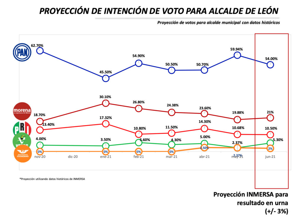 De acuerdo a la última encuesta de Inmersa Marketing que presentó su director Rodolfo Núñez, Alejandra Gutiérrez, la candidata del Partido Acción Nacional (PAN) a la Alcaldía de León aventaja 3 a 1.