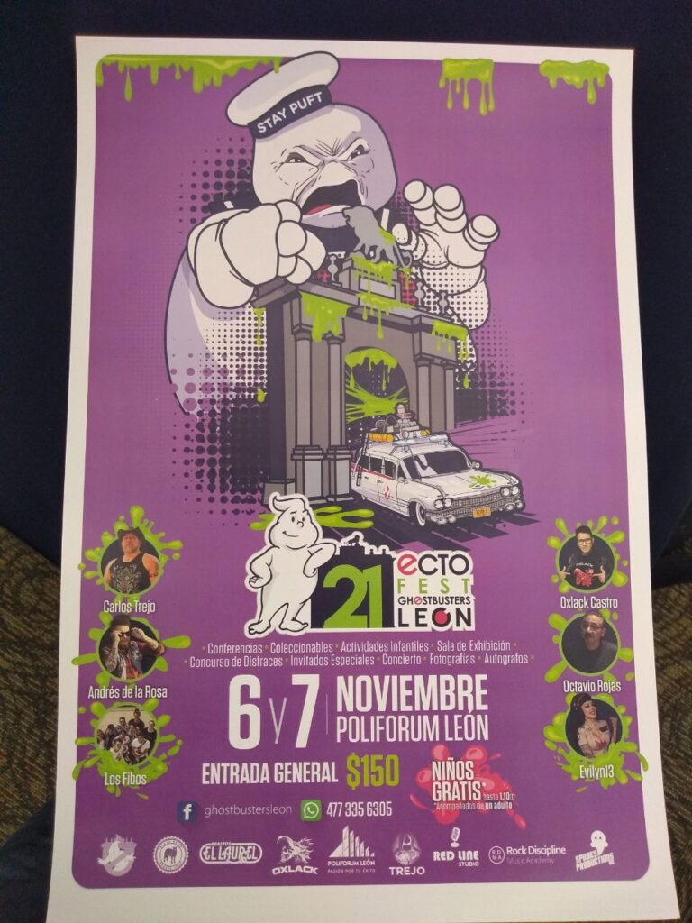 Por supuesto estarán los Cazafantasmas de León con todo y su vehículo, el Ecto 1 León, y no podía faltar el Señor Malvavisco que se paseará entre los pasillos de la convención para que los niños y sus papás lo disfruten y se puedan tomar fotos con el emblemático personaje de la cinematografía de Hollywood.