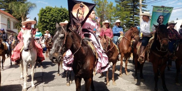 En el exterior del templo se dieron cita cien jinetes que llegaron en caravana y con música de viento a visitar al milagroso Santo.