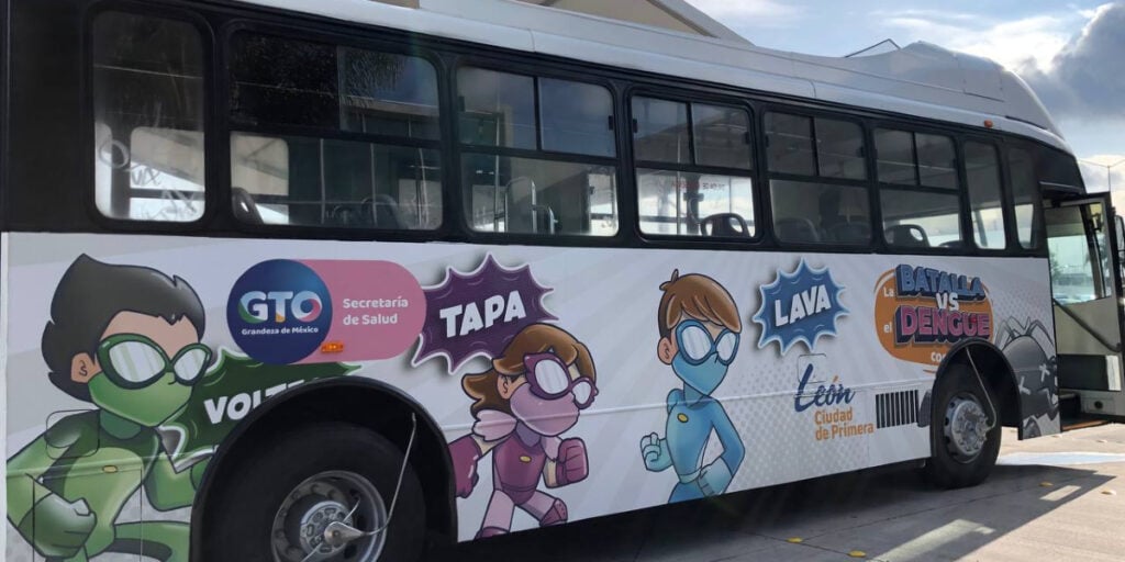 Esta mañana, empresarios del Sistema Integrado de Transporte (SIT) en León, hicieron entrega oficial a la Secretaría de Salud de Guanajuato (SSG) de una unidad vehicular articulada, mejor conocida como 'oruga', para las brigadas contra el dengue.