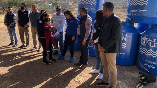 Fueron entregados 100 tinacos para brindar agua a las personas que se encuentran en asentamientos irregulares, "Dale Agua a León", comenzó con esta primera entrega en las intermediaciones de la colonia Colinas del Peñón y sus alrededores.