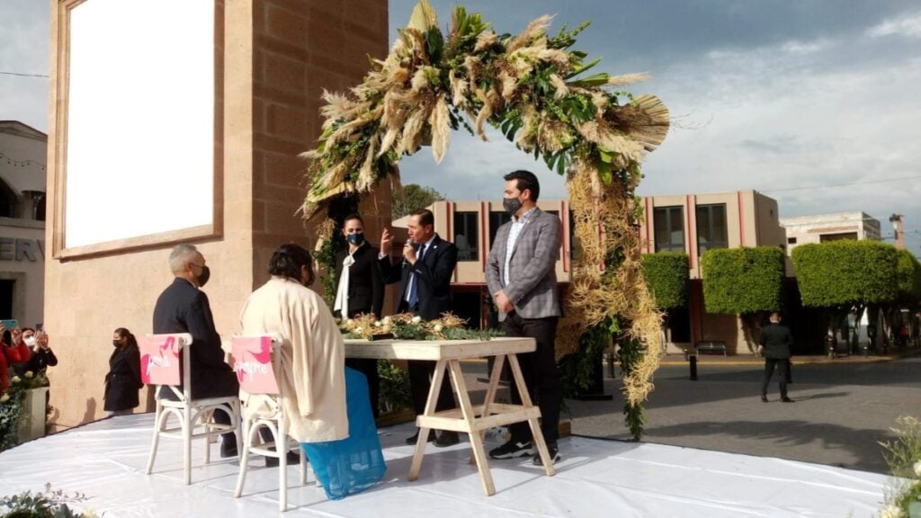 Al evento asistió Juan Hinojosa Diéguez, director general del Registro Civil, quien dio fe de que se instalarán las mesas en donde contrajeron matrimonio las demás parejas.