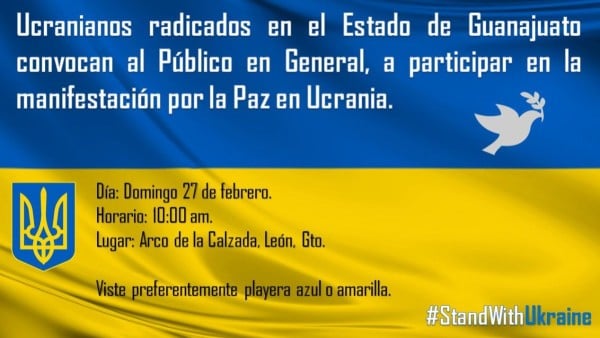 Llaman a la población general a unirse mediante el hashtag #StandWithUkraine. Piden vestir preferentemente playera azul o amarilla, colores de la bandera de Ucrania.