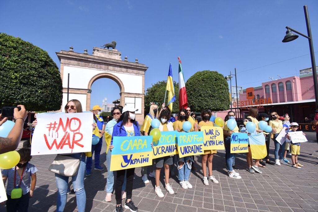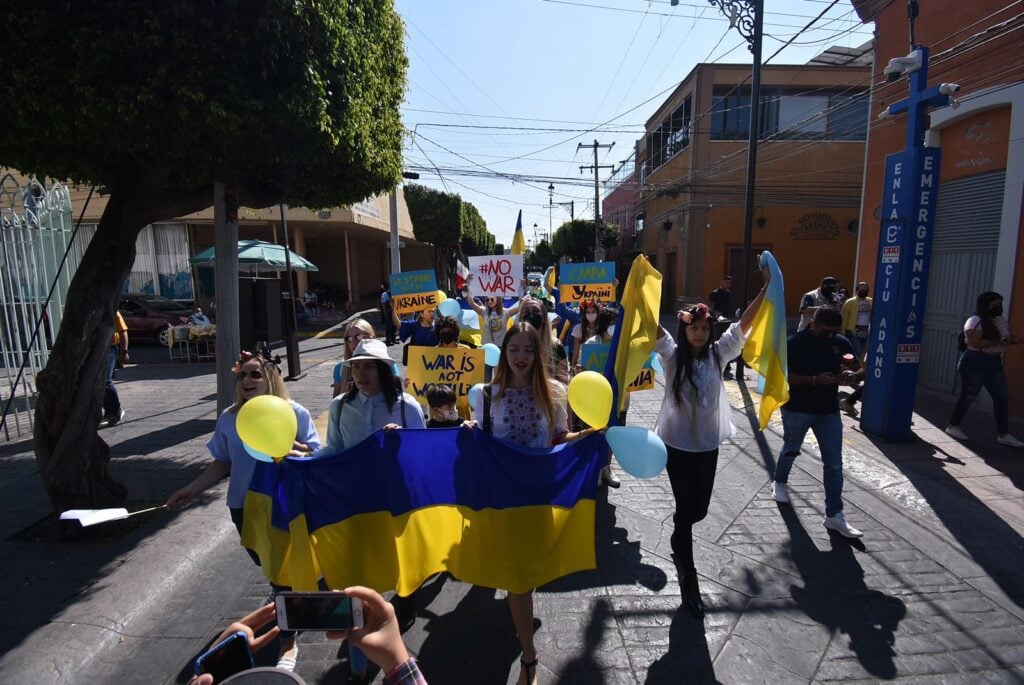 Un grupo de alrededor de 50 personas entre ucranianos y leoneses exigieron un alto a la belicosidad de Vladimir Putin. La marcha tuvo como marco el arco de la calzada y el emblemático corredor de la calle Madero.
