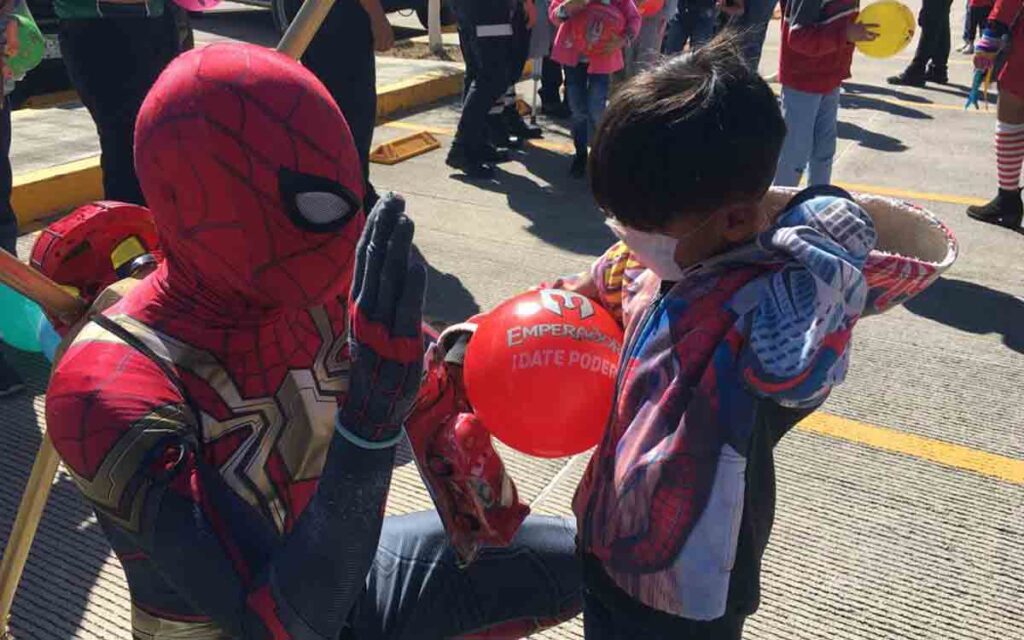 Al lugar llegó Spiderman y la botarga de los Bravos quienes ayudaron a los reyes magos a entregar los juguetes.