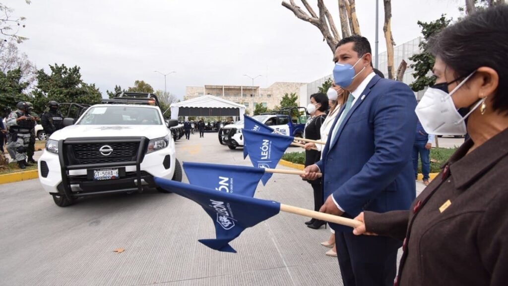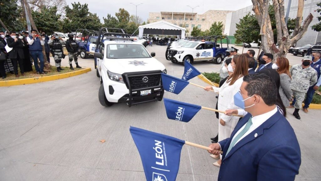 Equipan a la Policía Municipal de León con 28 camionetas, siete motocicletas equipadas como patrullas, 85 radios portátiles y 60 cascos balísticos, con una inversión de más de 27 millones de pesos, esto como parte del Fondo Estatal Para el Fortalecimiento de la Seguridad Pública Municipal.
