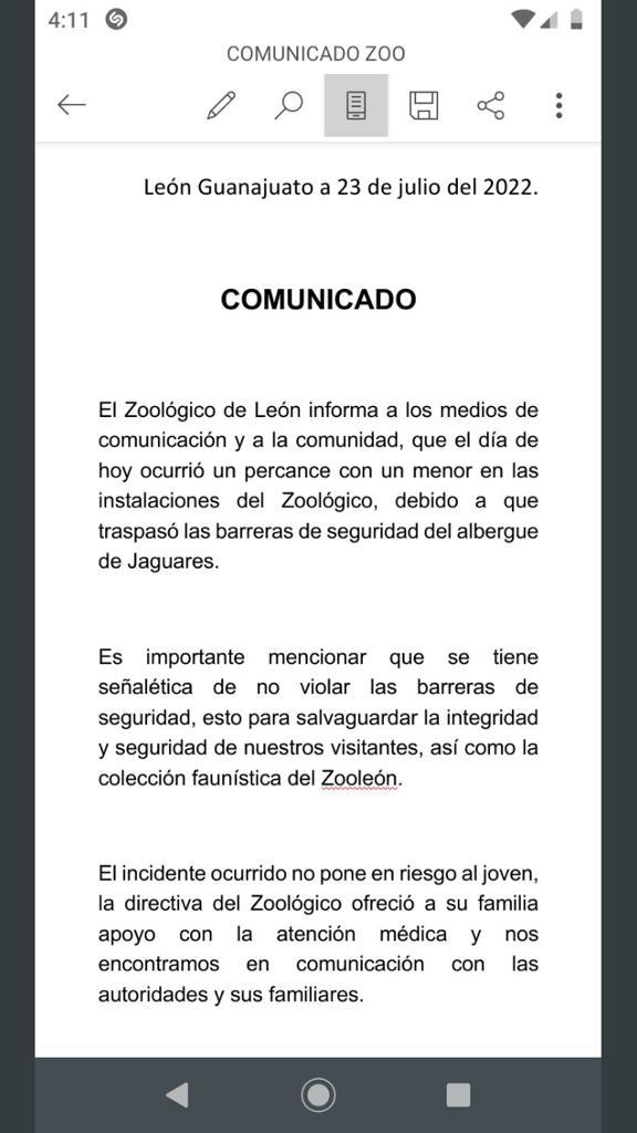 En un comunicado, autoridades del Zoológico de León, hicieron énfasis en que el percance ocurrió al no respetar las medidas de seguridad.