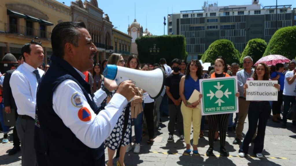 Este miércoles a las 11 de la mañana se realizó el Macrosimulacro 2023 en Presidencia Municipal para difundir las medidas de seguridad y saber cómo actuar en caso de un siniestro.