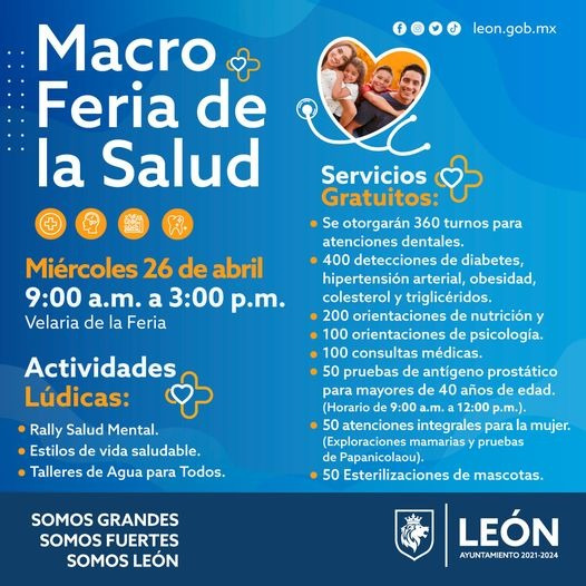 Este miércoles, el gobierno municipal de León tendrá la primera Macro Feria de la Salud en la Velaria de la Feria de León.