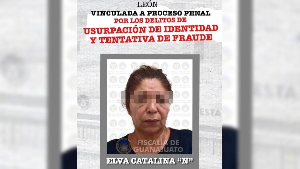 León.- Fue vinculada a proceso Elva Catalina “N”, luego de que fuera detenida por intentar abrir una cuenta bancaria “fantasma” con datos falsos. De acuerdo a la Fiscalía del Estado, se abrió una carpeta de investigación por los delitos de usurpación de identidad y tentativa de fraude en su contra.